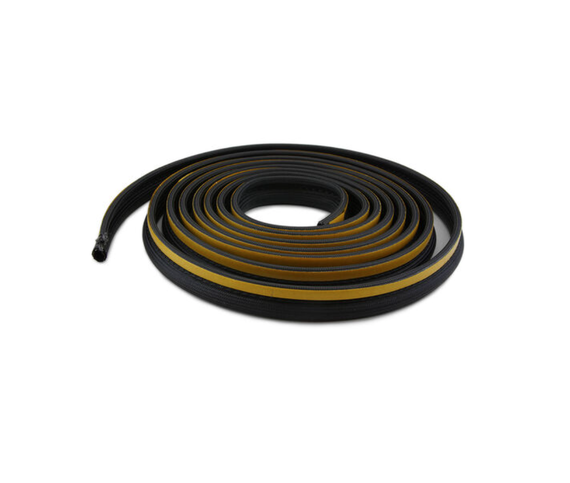 Joint de type boudin avec patte adhésive. Diamètre du boudin : 10mm. Largeur de la patte adhésive : 10mm. Epaisseur de la patte adhésive : 2mm.